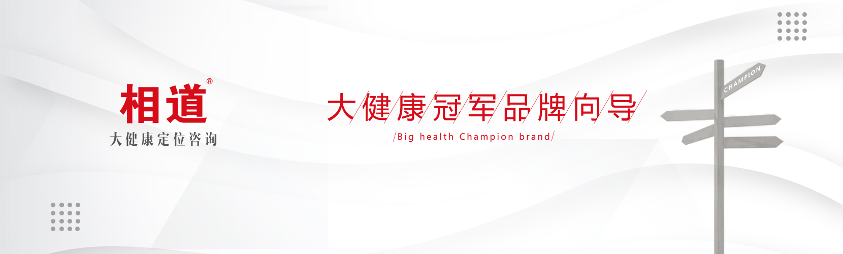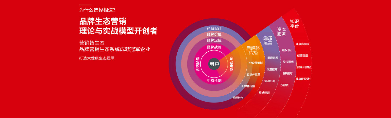 相道咨詢踐行以人為本,推動大健康品牌化運作,相時而動,道出奇正,做大健康冠軍品牌向導,攜手50名智慧合伙人,服務50家大健康領域冠軍品牌,力爭成為大健康領域品牌定位咨詢第一品牌